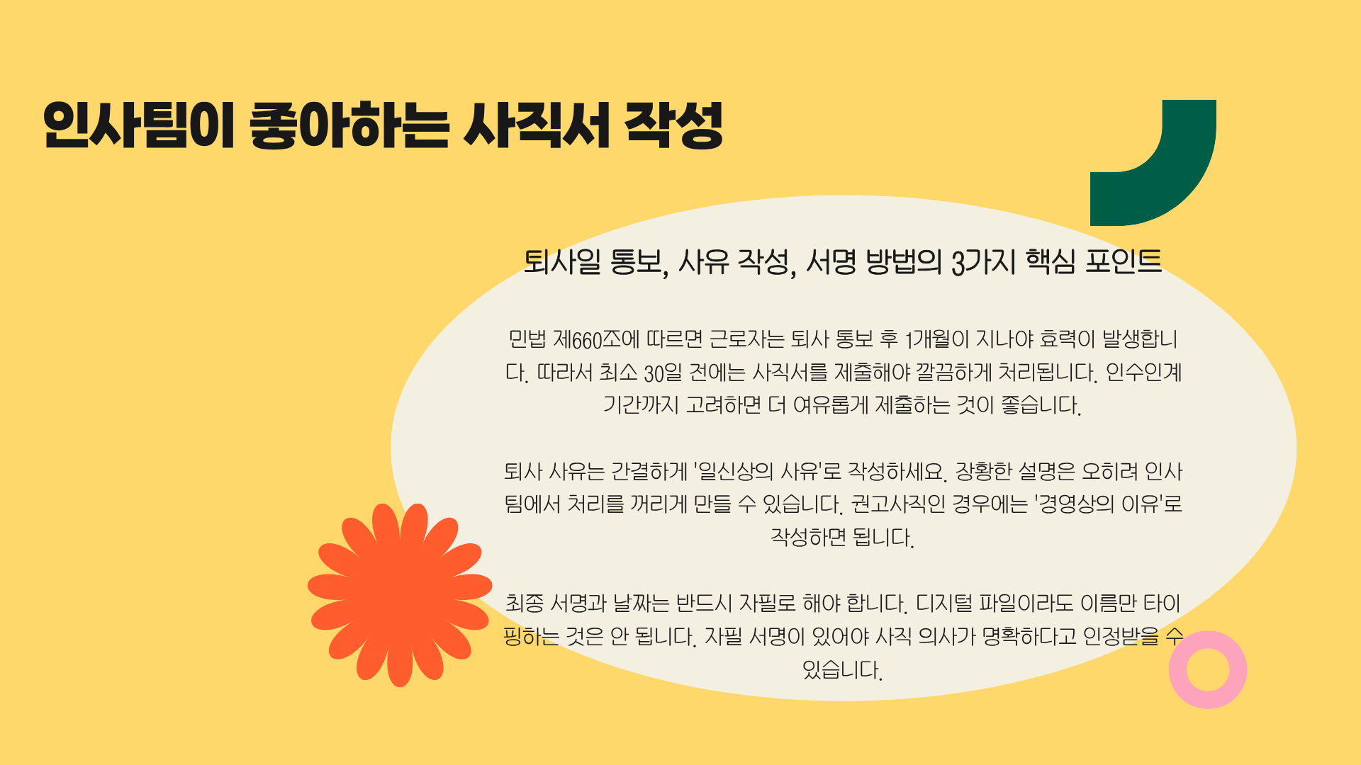 ✍️ 2. 인사팀이 좋아하는 사직서 작성 핵심 노하우 (3가지)