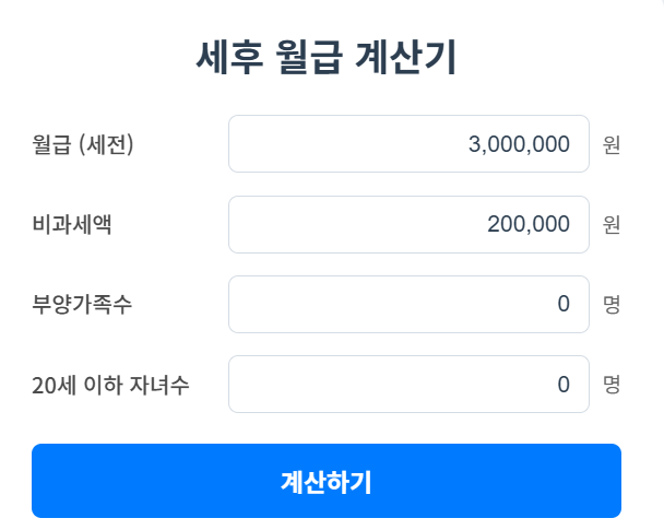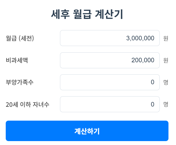 세후 월급 계산기 사용하러 가기 ...>>>>>