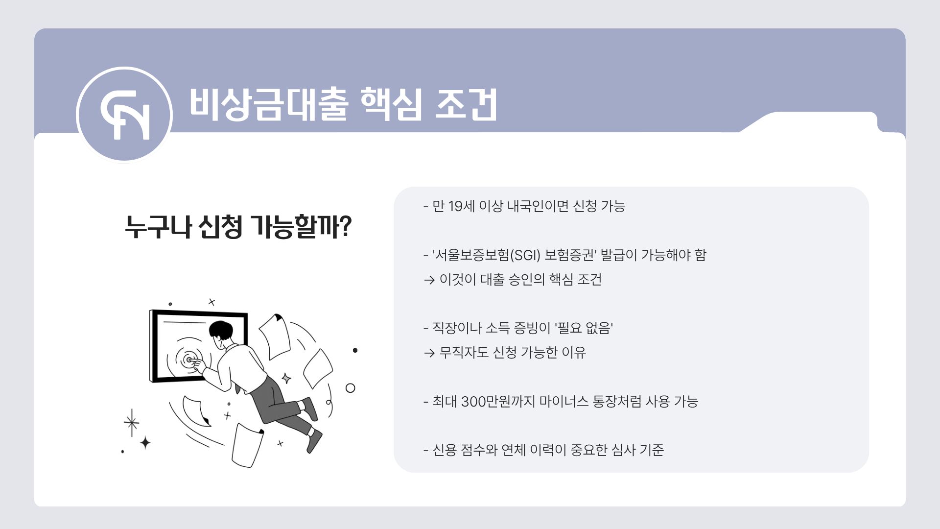 3. 직장/소득 증빙 필요 없음 (무직자 가능)
