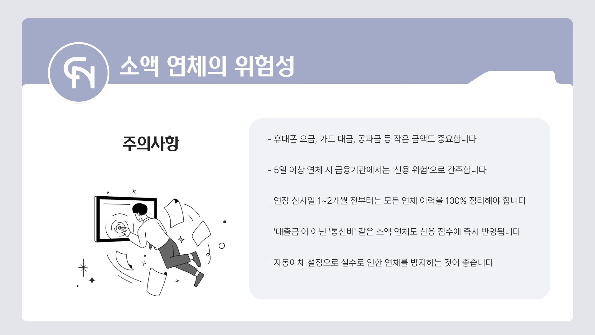 1. 단기 소액 연체: 만 원이라도 5일 이상 연체하면 치명타입니다.