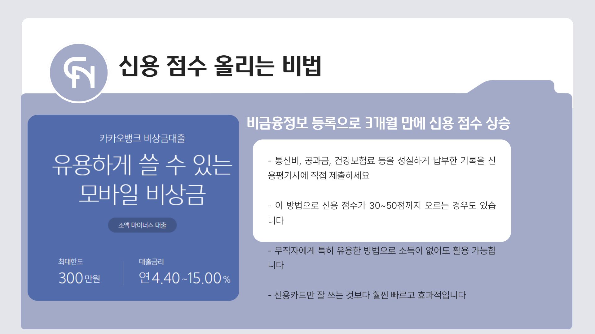 2. 근본 문제 해결: 신용 점수 관리 및 비금융정보 등록으로 다음 심사 대비