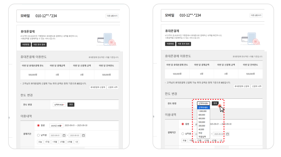 소액결제 한도를 쉽게 설정해요
